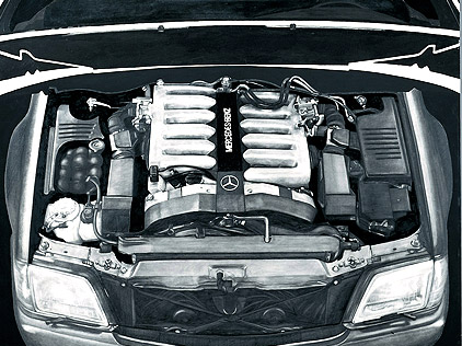 Robert Longo, Ohne Titel (Motor), 1995, Kohle, Grafit auf Papier auf Masonite